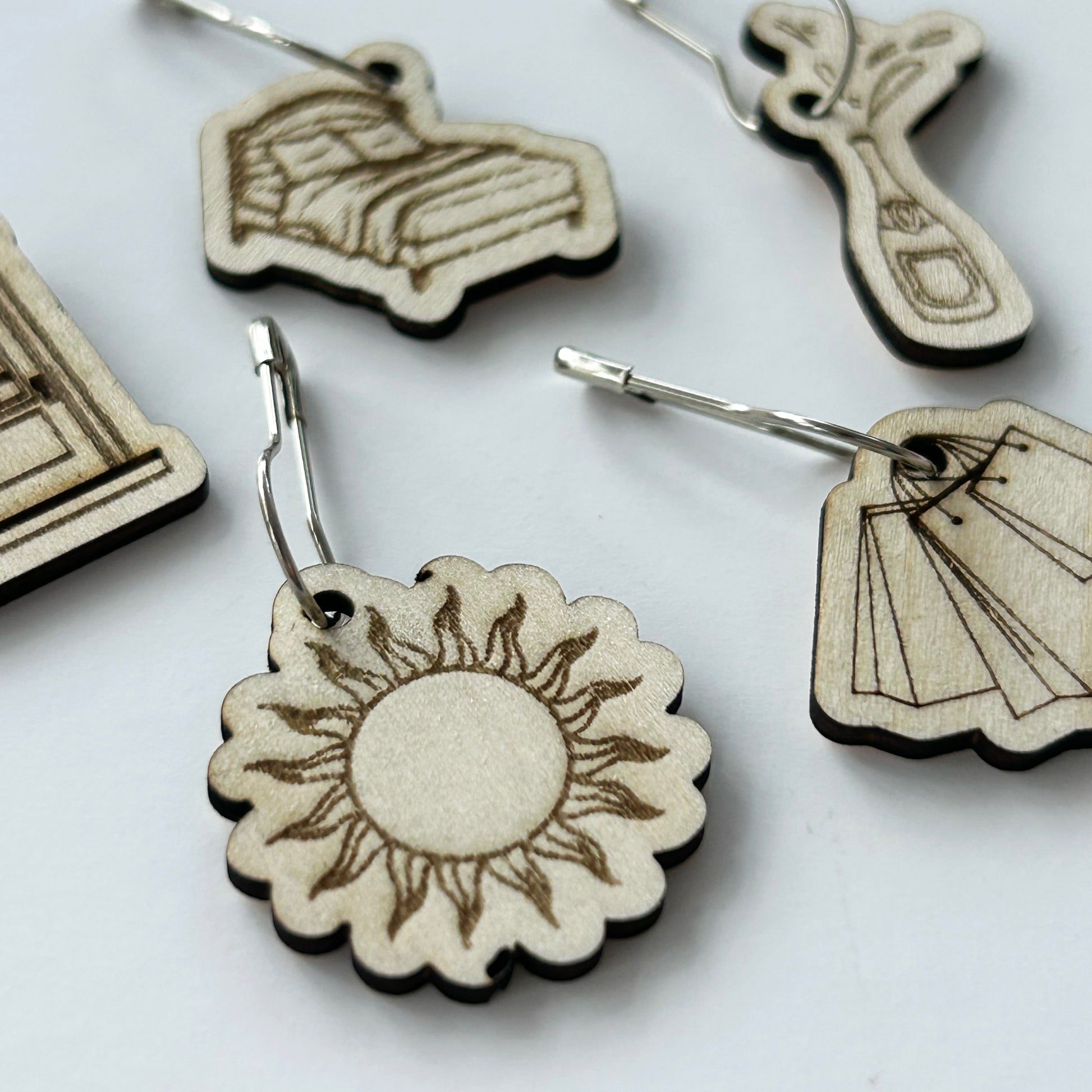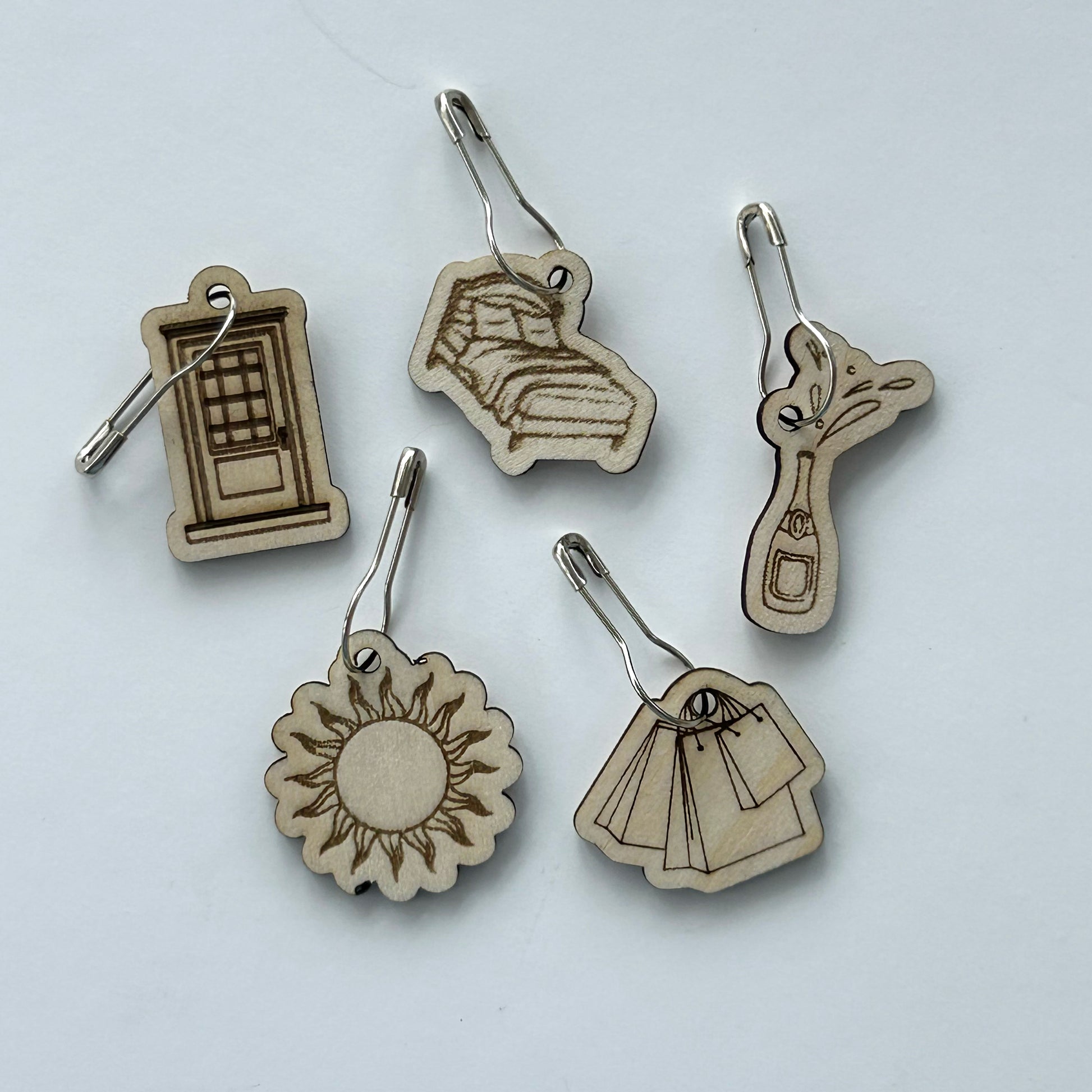 Crafted from 2mm basswood plywood using precision laser cutting and engraving, these August-era markers add a playful pop to your crochet and knitting projects. Each marker features a secure bulb pin attachment that won't snag your yarn. The perfect accessory for crafters who love to stitch it off.