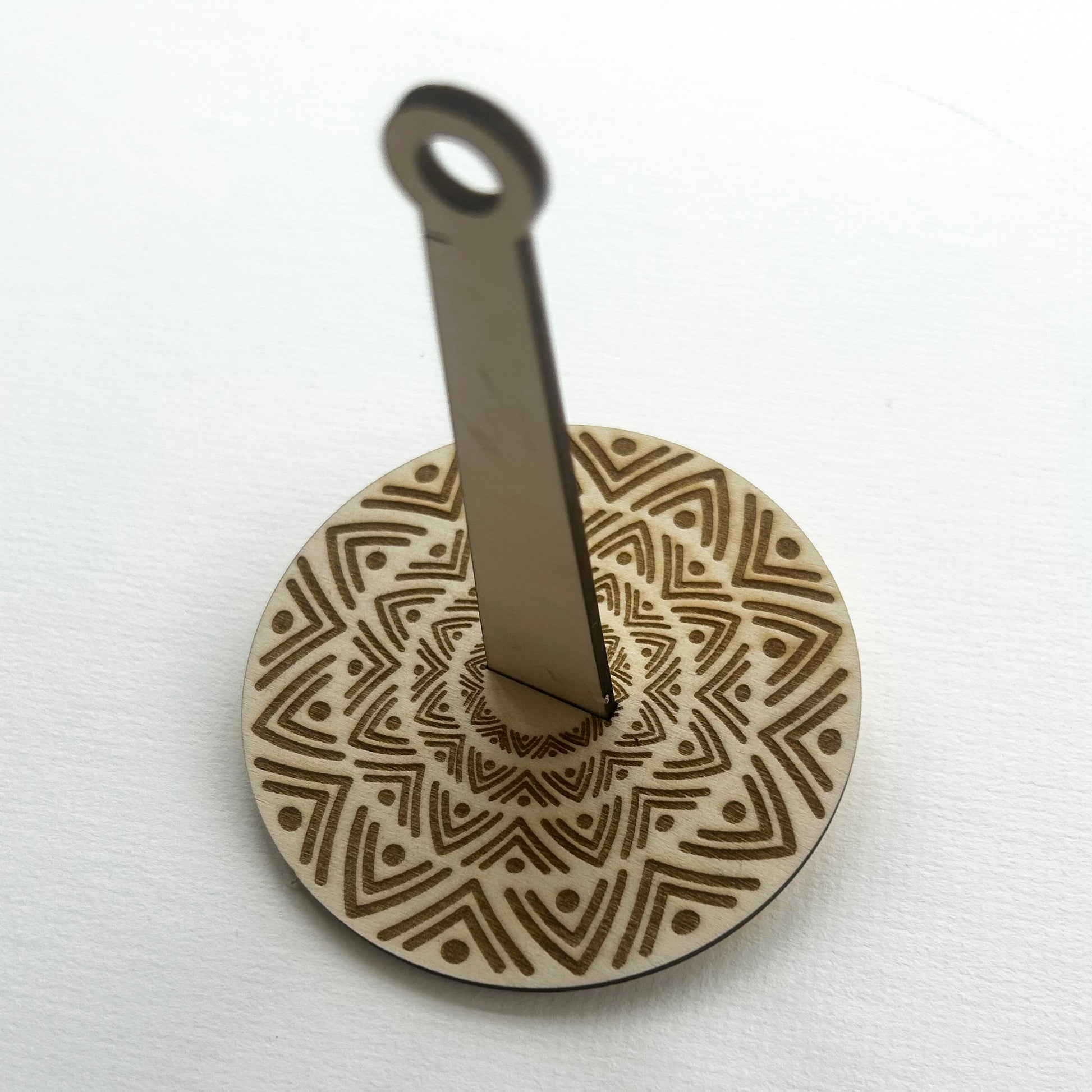 Please provide jpg, png or svg of your image. Printing area is a 8x8cm circle. Base is able to be insert with print facing up or down. Double-sided print is available for an extra fee.